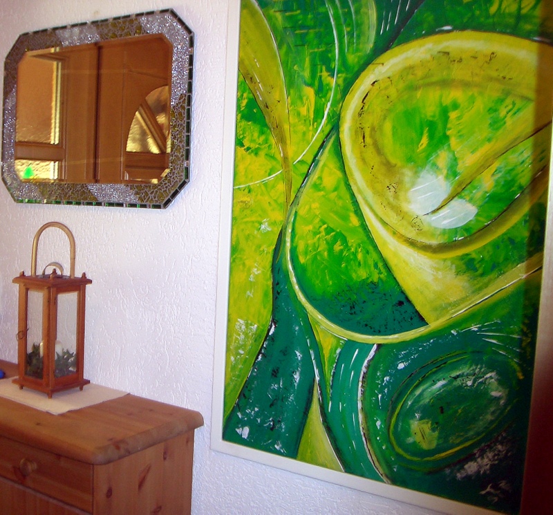 Vorraum I 7. April 20109. April 2019 admin Hier habe ich in einem Vorraum: – die Zählerkastentür (welche aus Metall ist) etwas „verkleidet“ und – dazupassend einen Spiegel aus Glasmosaik angefertigt