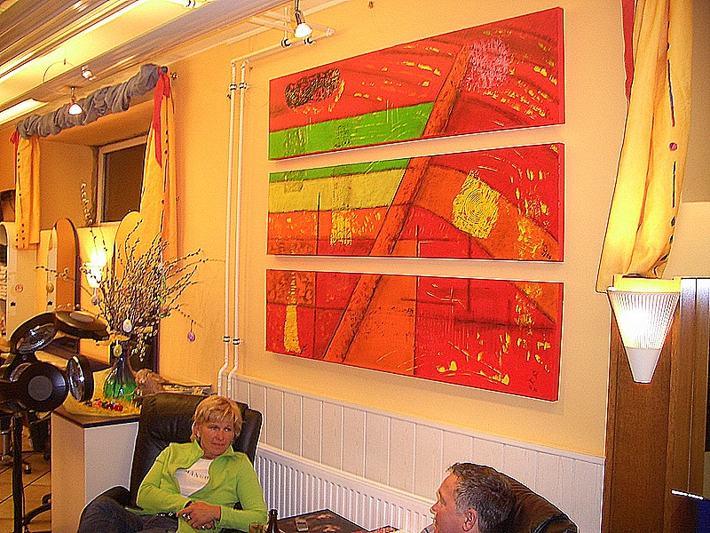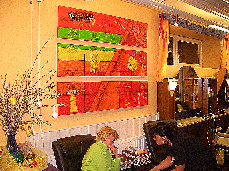 Feuerregen 25. März 200829. April 2019 admin Gesamtgrösse: ca. Höhe 140 x Breite 150 cm Diese Auftragsarbeit ist für die „Frisierstube Elfi“ (in Elixhausen) entstanden.