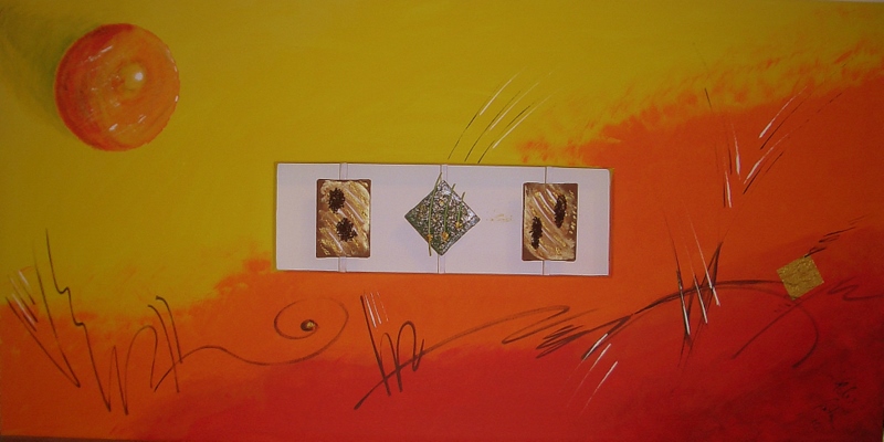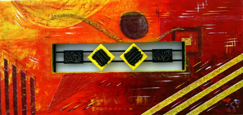 Grösse 70 x 130 cm Mischtechnik auf Leinwand Keilrahmen-Spezialanfertigung (im mittleren Teil keine Leinwandbespannung)