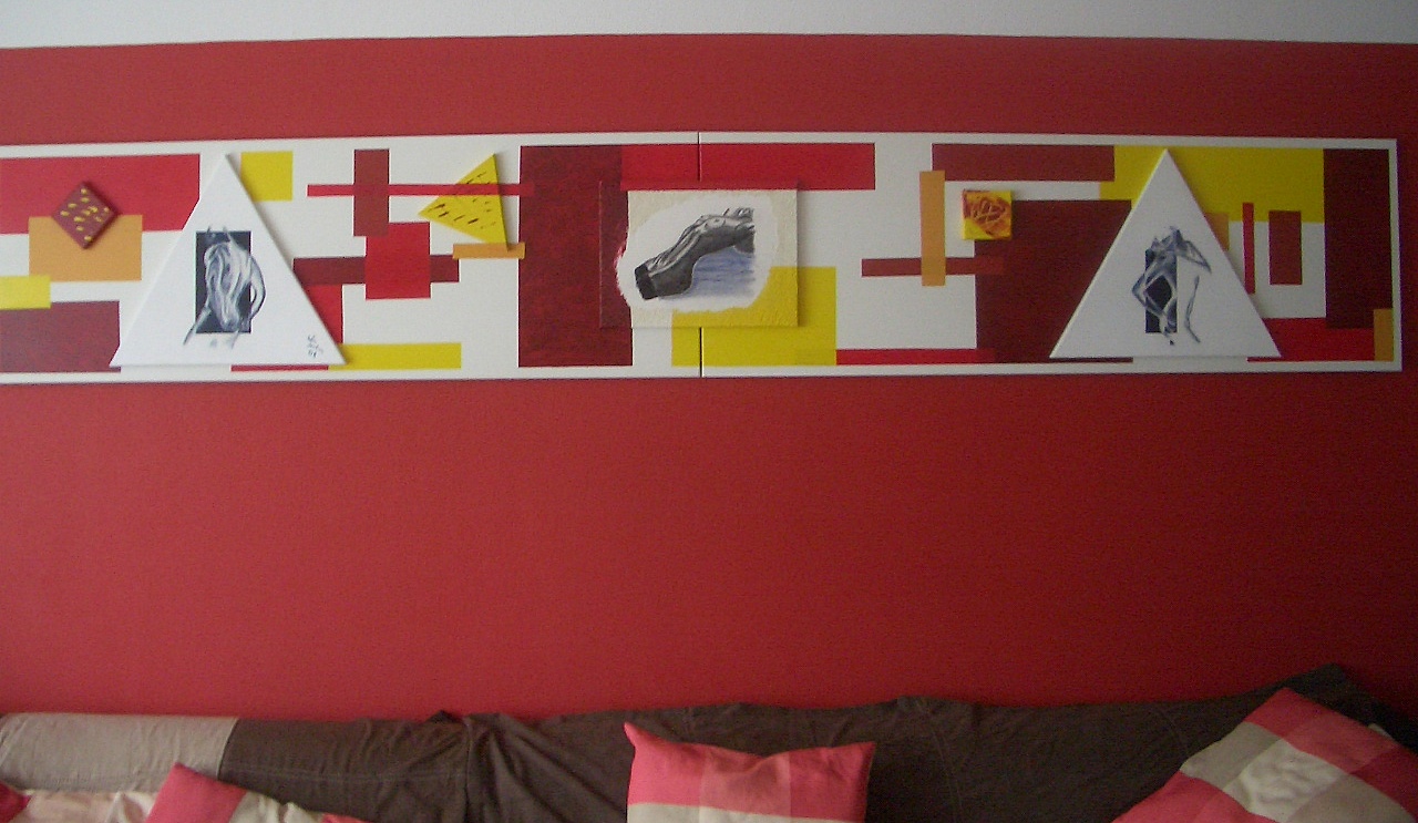 Gesamtgrösse: ca. Höhe 50 x Breite 300 cm Mischtechnik auf Leinwand Auftragsarbeit