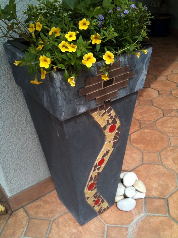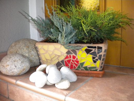 Hier habe ich in einem Vorraum: – die Zählerkastentür (welche aus Metall ist) etwas „verkleidet“ und – dazupassend einen Spiegel aus Glasmosaik angefertigt